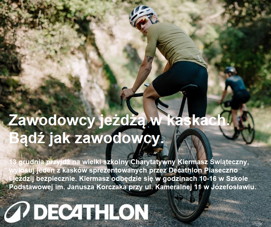 Decathlon Piaseczno sprawił miłą niespodziankę dla dzieci z Józefosławia i Julianowa. Gdy odbieraliśmy skrzynię z kaskami do jazdy na rowerze, hulajnodze lub rolkach, które to kaski Decathlon obiecał już wcześniej na loterię Charytatywnego Kiermaszu Świątecznego w Szkole Podstawowej im. Janusza Korczaka, okazało się, że w wielkiej skrzyni są również rolki do jazdy oraz ochraniacze na łokcie i kolana dla dzieci!